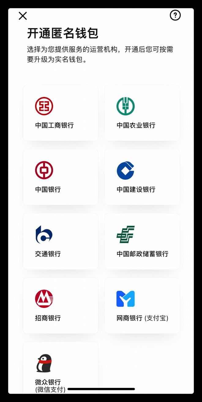 进入 App 后可以看到,用户可自行开通不同运营机构的数字钱包。