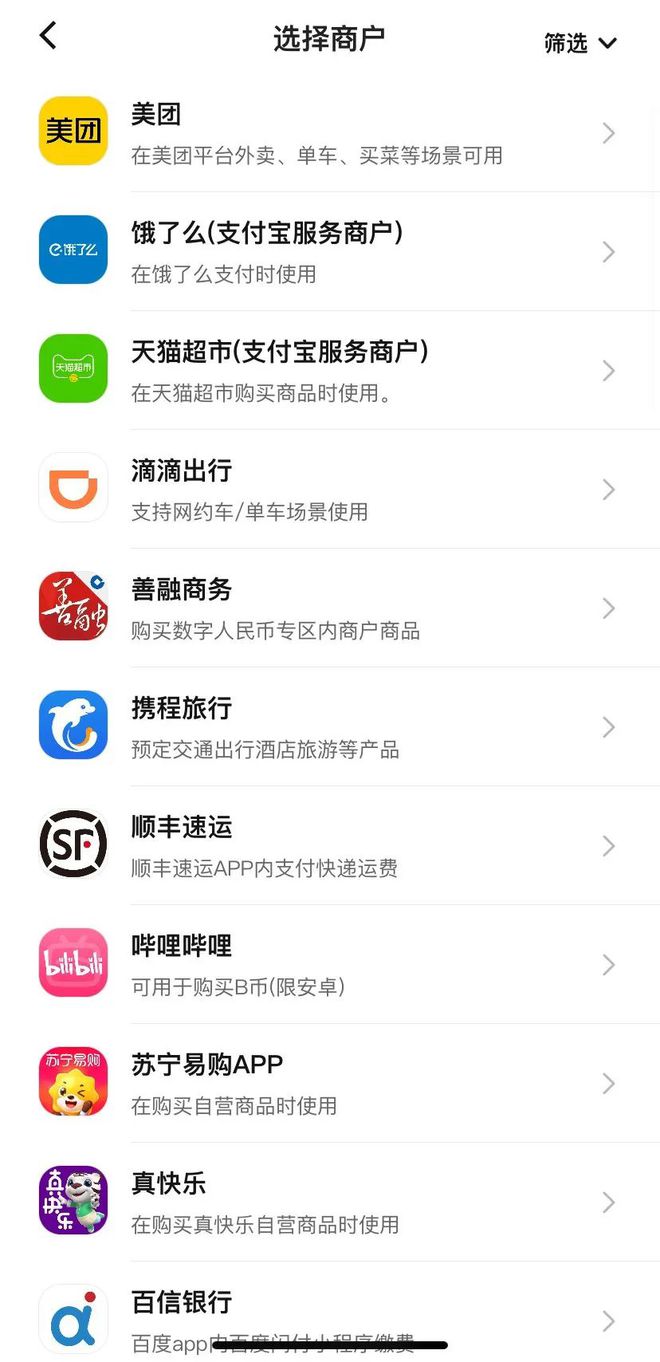 除此之外,数字人民币 App 推出了「子钱包」功能,用户可以通过这一功能,选择提供数字人民币付款的应用进行绑定。