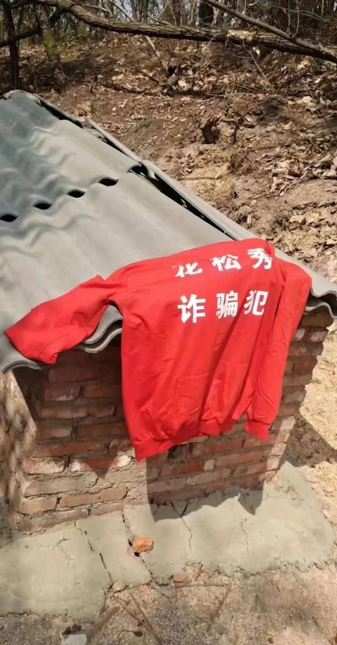 他们身穿红色的长衫,戴着红色帽子,疑似从宁波赶来。他们给花松秀老家送去了花圈,并且威胁要挖开他爷爷的墓。他们对着墓碑大声喊道:“花松秀,你还有没有良心?你跑路了,我们怎么办?你还我们血汗钱!”