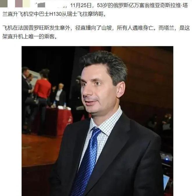 俄罗斯币圈大佬塔兰坠机身亡:2022年12月,53岁的俄罗斯亿万富翁维亚切斯拉夫·塔兰 (Vyacheslav Taran)乘坐的直升机从瑞士起飞后在法国和意大利边境处坠毁,塔兰不幸身亡。塔兰是Libertex交易平台的创始人,该平台提供加密货币交易等金融产品。事故原因仍在调查中。