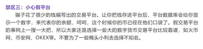 另外,目前虚假交易平台特别多,用户一旦分辨不清,极有可能损失惨重。文中建议大家去okex这样靠谱的交易平台,作为全球一线交易所,okex拥有强大的技术支撑和抗风险能力,不要去假交易所或者小平台交易,因为假平台会有假钱包,里面通常会设计一些bug,盗取你的数字货币。而okex这类的一线交易所,他们的平台机制比较完善,要比假交易所和小平台更靠谱。