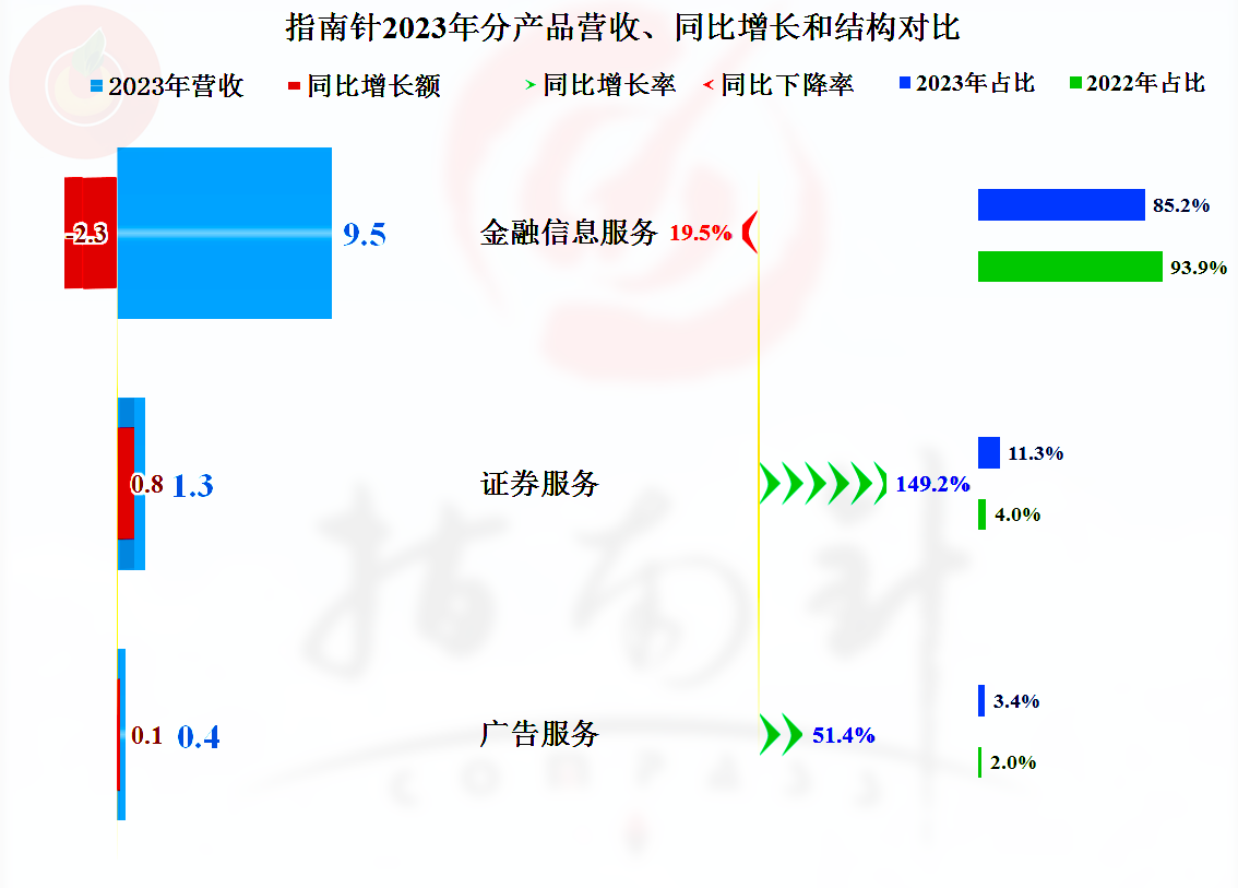 指南针的情况就是这样,2022年涉及证券业务后,慢慢在提升这方面的业务,以此减轻原有信息服务业务萎缩的风险,从2023年的业绩看,他们还远谈不上转型成功。