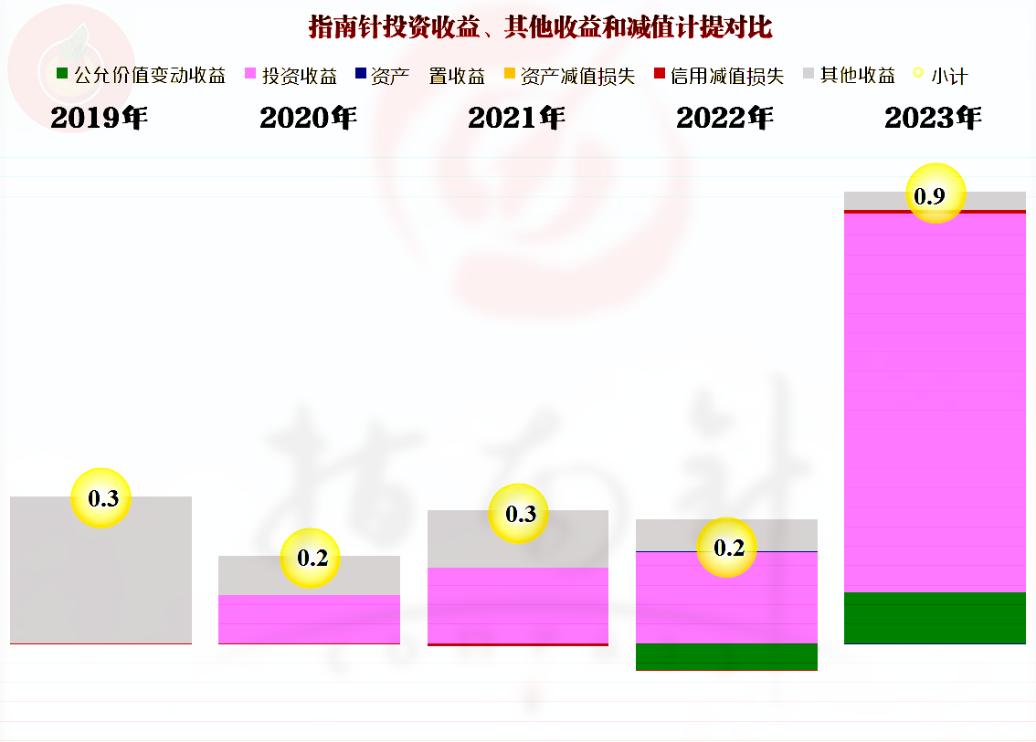 其他收益方面,历年都有一些净收益,2023年主要是投资收益增长明显,查询明细构成后,最大的收益项目是“处置金融工具取得的收益”,不管2023年用他们软件炒股的人怎么样,指南针自己搞金融工具还是赚了钱的,而且就靠这个才保住了全年没出现亏损。