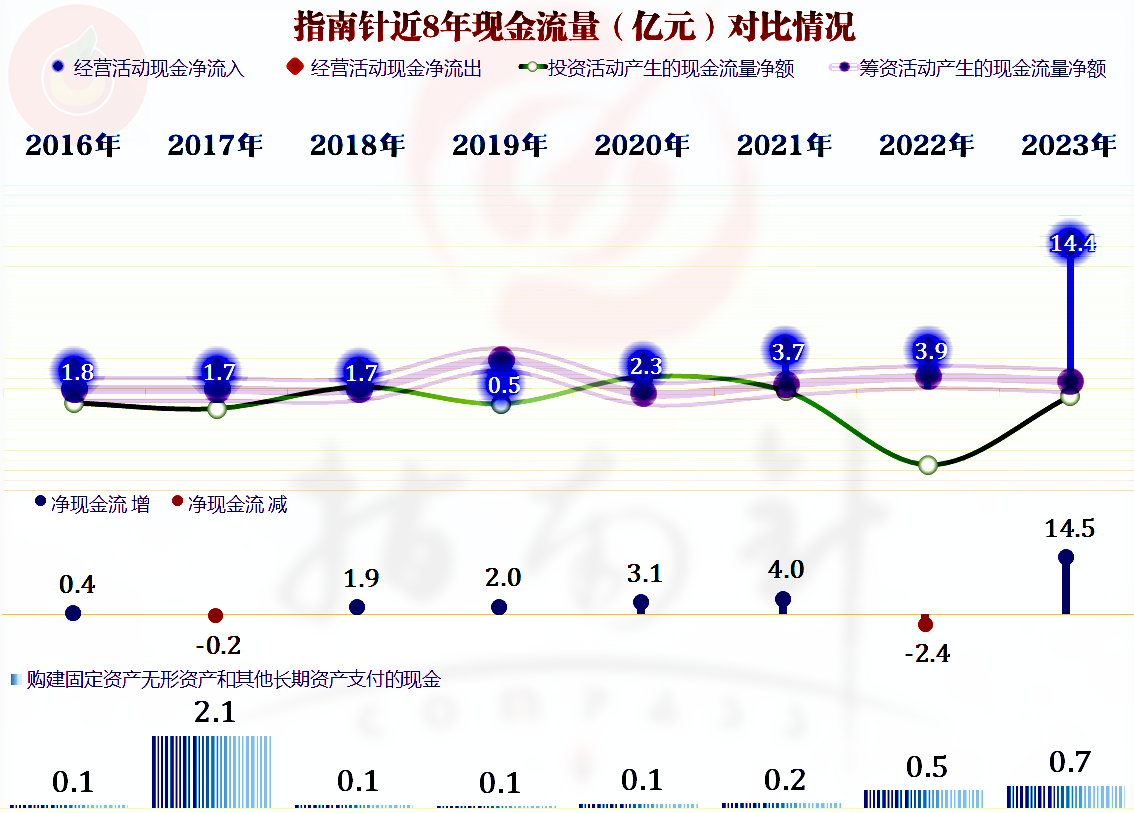 现金流量的表现方面一直都比较好,也不需要太多的固定资产类投资。2023年经营活动的净现金流增长明显,原因还得再细看一下。