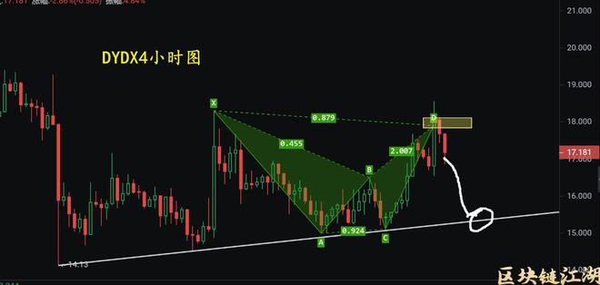 DYDX作为去中心化币种,DYDX价格跟随大饼也出现了一定的反弹,但目前的反弹还不足以大反弹,短期内可能会再次回到支撑线位置寻找支撑然后再上涨。关注15.5美元的支撑。