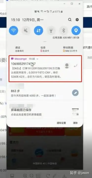 8、在手机上也会有短信提示有没有收到BTC,收到的BTC数量是多少,当时的BTC价格是多少,总价值是多少。