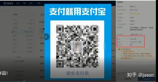 4、选择支付宝支付,找到对应的支付二维码或者对方的支付宝账号,打开手机支付宝向对方汇款。注意!!这里你选择购买时购买的是多少钱,向对方转账时一定要转对应的钱,否则对方是不会放BTC给你的。