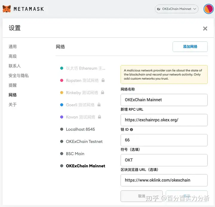 如果在网页操作,那就需要安装小狐狸钱包(metamask),具体配置如下图所示。