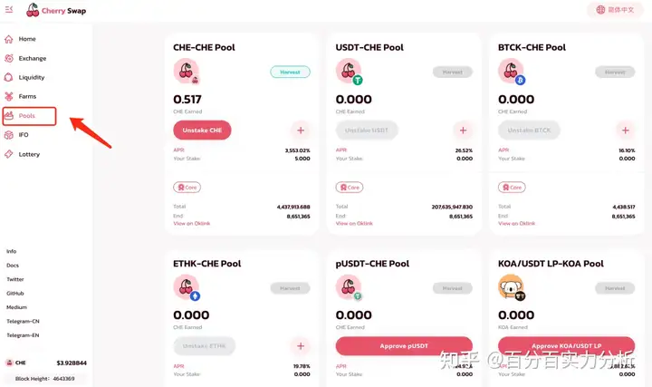 下面我就以Cherryswap为例,手把手教大家如何参与挖矿。