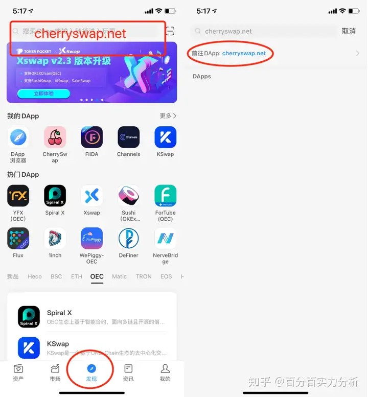 首先在钱包发现页的顶部输入cherry的地址,然后前往这个项目。